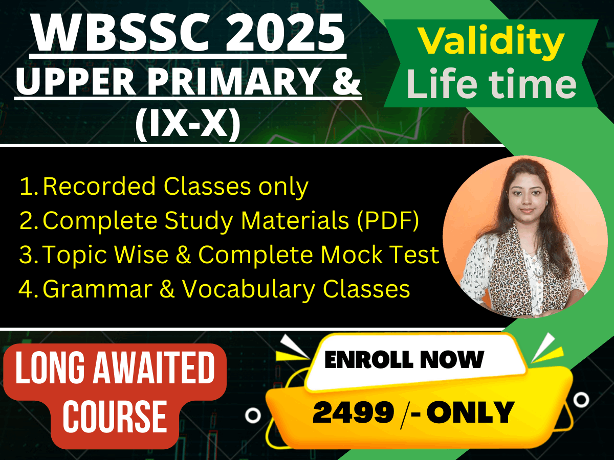 1. Recorded Classes only (Text Analysis) 2. Complete Study Materials (PDF Notes) 3. Topic Wise and Full Mock Test 4. Grammar and Vocabulary Classes with Study Materials 5. Three months Live class after notification