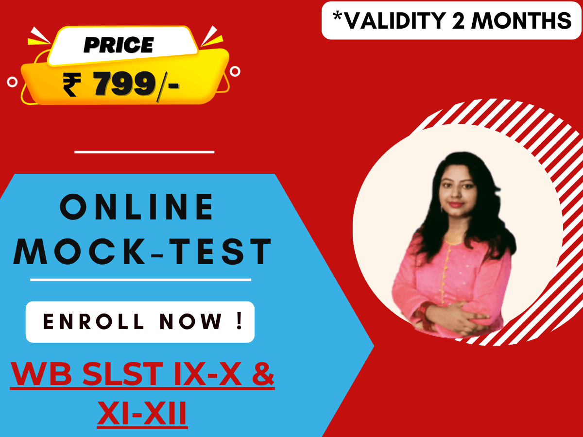 COMPLETE MOCK TEST SERISE FOR WB SLST 9 TO 12 **Full Mock Test Will Start From 1st August** 1. 10 FULL MOCK TEST (600 MCQs) 2. TOPIC WISE MOCK TEST 3. VALIDITY TILL 30 SEPTEMBER